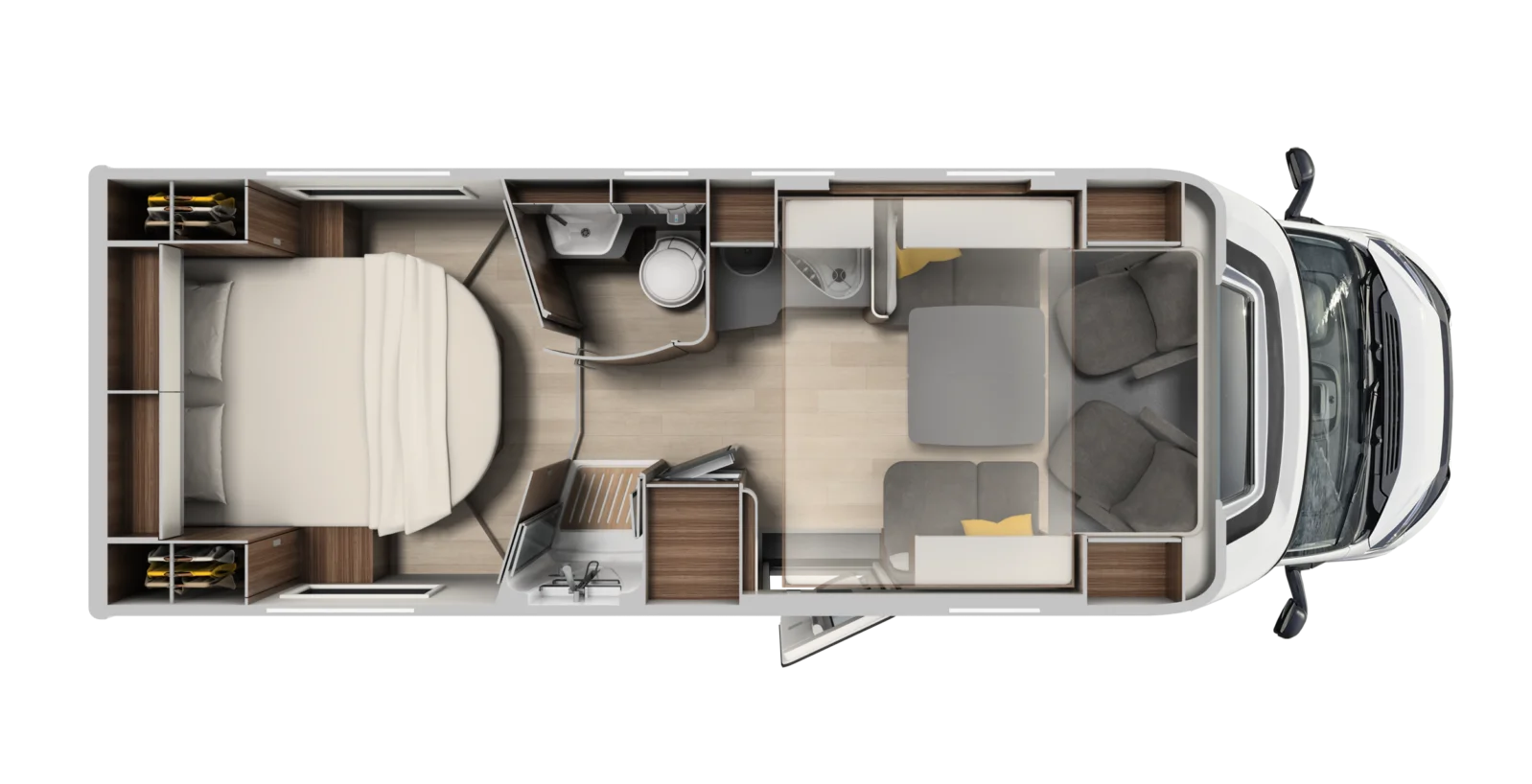 • Front dinette with two travelling seats